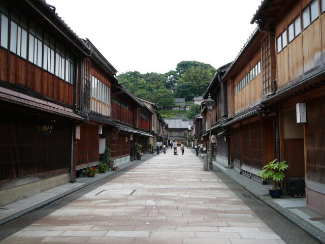 長町武家屋敷跡(武士住宅遺跡)曾經是加賀藩的上級、中級武士們的住宅地區,細長的道路和黃色的土圍牆、門窗的風格可以看出往昔的悠然情形。ひがし茶屋街(東茶屋街)在金澤城的西北邊,距離不遠,可是看錯地圖上的標示,問當地人又講錯方向,大概多繞了二十分鐘才找到,茶屋街保留了1820年町成立時的建築物,看起來古色古香,有部分的房子目前還有在營業。