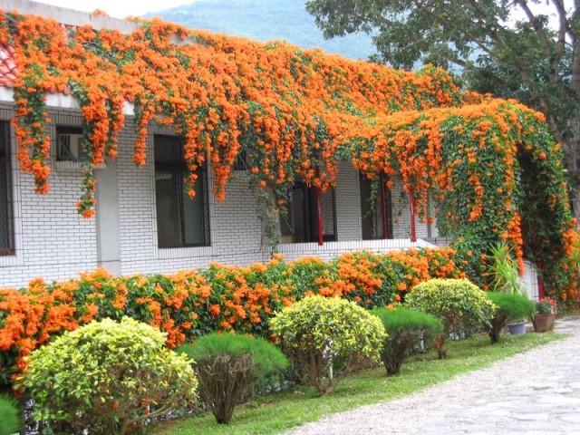 那炮仗花開得真美!我很想重龍吐珠或炮仗花讓它攀爬
