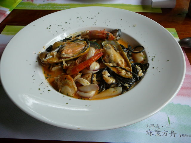 毒癮海鮮麵用的的墨魚麵條,海鮮種類豐富,可能是調味的關係,吃不出海鮮的甜味與鮮度,後來想想,本來就是深山內,沒事點什麼海鮮呢!