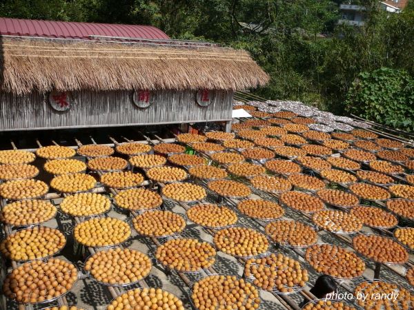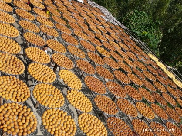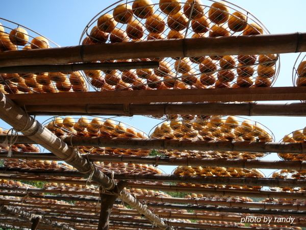 要安心的滿足口腹之慾,不妨直接到產地走一遭,曬柿餅的美麗場景很值得參觀,有如滿城黃金甲般的視覺享受。如果要參觀製作柿餅的農家當然不能錯過新竹新埔鄉的旱坑里,此處柿子產量並不多,大都購自別處,但因地形氣候特殊,適合柿餅的製作,因此成了台灣有名的柿餅加工區。此處有不少的柿餅商家,我比較喜歡「味衛佳」,它的曬場完整,很適合拍照,此地每年都吸引了不少攝影愛好者,更是不知耗殺多少攝影人的底片呢!開車由國道3號關西交流道79K下,右轉118線往新埔,到約12.5K處的天主堂右轉竹13線往旱坑里,經新星國小後的叉路右轉順著竹13線前行,在約5.9K處左轉下坡依指標前進即可到達旱坑里。