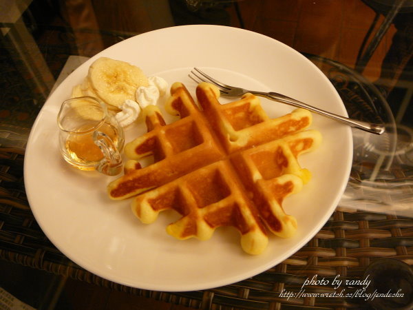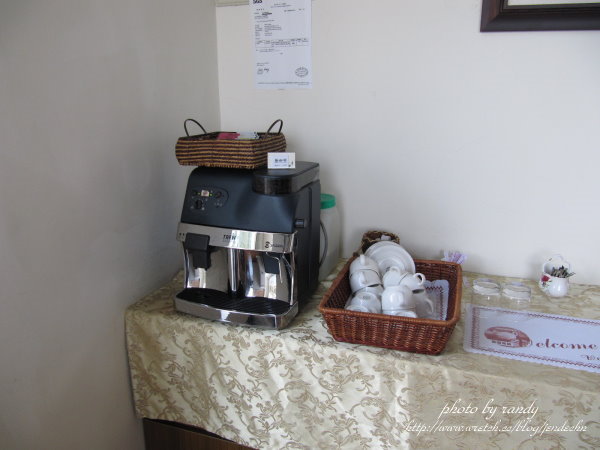 除了早餐外,主人還提供下午茶(現做的鬆餅和現磨咖啡)及宵夜(各種口味的泡麵)。雖然已經用完晚餐,在美景的吸引下,三人還是至大廳享受下午茶(晚茶)的輕鬆氣氛,那隻上過電視會唱歌的阿醜(狗的名字)也在大廳隨音樂而高歌一曲,真是難得的畫面,花錢還看不到哦!
