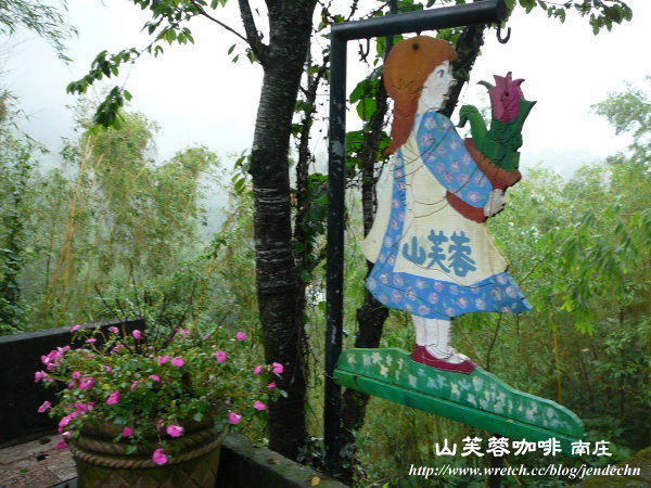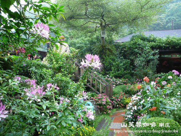 早年台灣咖啡文化不流行,咖啡館只集中在幾個大都會區,大都以室內為主,戶外花園式咖啡館少之又少,位於綠色山莊對面的「山芙蓉咖啡」可算是庭園咖啡的老前輩!和山芙蓉的女老闆閒聊過幾次,原來她的本業是園藝造景,而咖啡館其實是無心插柳中開起的!當年她由外地回到老家,將老家重新整理,運用園藝專業將咖啡館佈置得十分雅致,因此吸引了不少慕名而來的遊客。當時,只有前面一間小小咖啡館,未收門票,免費參觀,室內大量採用植物花草點綴裝飾,在當時獨匠一格,因此媒體競相報導。