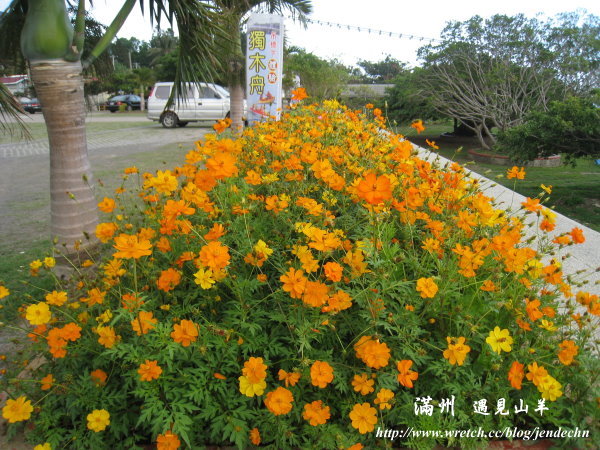 再往前快到滿州鄉的地標時,草叢中突然衝出一群黑山羊,每一隻看起來都壯碩無比,顯然恆春半島的優質環境,讓山羊過得健康快樂。倏忽間,山羊以熟練的技巧越過欄杆,消失在海岸邊的草叢中,旅遊恆春多次,第一次遇見這種畫面,內心雀躍不已!