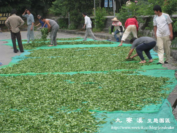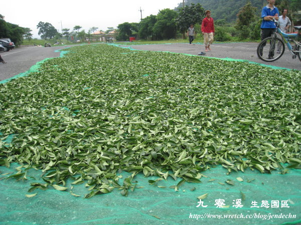 繼續往內走,園區的停車場內曬滿了今年的春茶,未聞九寮溪的真面目,卻被淡淡的茶香震攝住,為什麼市面上很少見到大同鄉的茶葉?是自己太孤陋寡聞了嗎?