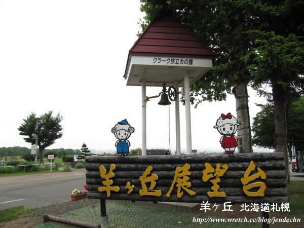 一到羊ヶ丘首先看到的是克拉克博士的銅像,克拉克博士是札幌農學院(北海道大學的前身)的初代教頭,為了紀念他對北海道的貢獻,於1976年(克拉克博士誕生150週年)建立銅像。由銅像的後方遠眺,可看到札幌巨蛋,只可惜因天候的關係,照片色彩遠不及雙眼所見,美景只好映在腦中。