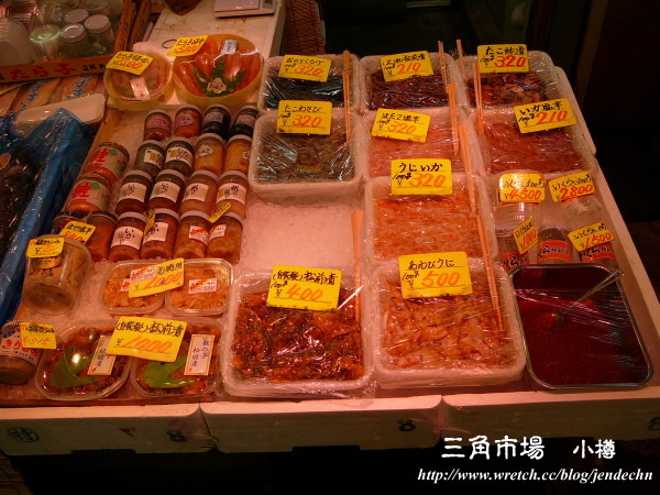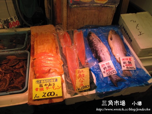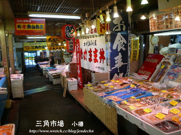 三角市場位於小樽JR車站右側,不起眼的入口,進入之後才發現別有洞天,除了新鮮的魚類之外,還有海產、蔬菜、雜貨等各式各樣的店,已過中午用餐時間,人潮不多,逛起來反而輕鬆自在。