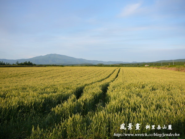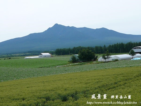 北海道東邊知床半島根部的美麗民宿「風景画」,位於斜理岳山麓,老婆在樂天搜尋,很喜歡這家民宿的感覺,不多加考慮就選擇了它,而「風景画」果然也不負所望。民宿四周的景色恰如其名-風景如畫,素樸的木造建築置身在遼闊的麥田和美麗的馬鈴薯田中,背景襯著壯麗的斜理岳,這裡遠離塵囂,沒有汙濁的空氣、吵雜的人群,只有大自然的光影色彩揮灑如畫,寧靜清幽令人如痴如醉。