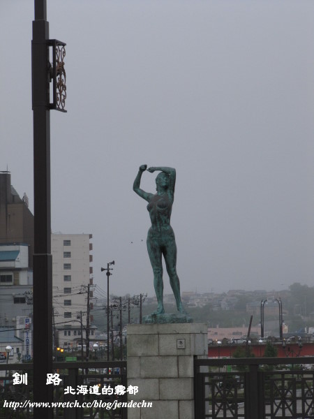 本來以為釧路這個海產交易蓬勃的城市,應該是個商業氣息比較濃郁的都市,沒想到車子一進入釧路市,兩人就被這個城市深深吸引住。整齊美麗的市容,沒有商場緊張的煙硝味,反而充滿了文藝氣息,街道上到處都看得到雕塑品,這個城市釋放的氛圍很歐洲,讓人輕鬆自在。釧路因為地形的關係,很容易起霧,是北海道有名的霧都,可能因為起霧的緣故,密度極高的美麗街燈是這個城市的特色,尤其丹頂鶴路燈更是強烈吸引著遊客的目光。