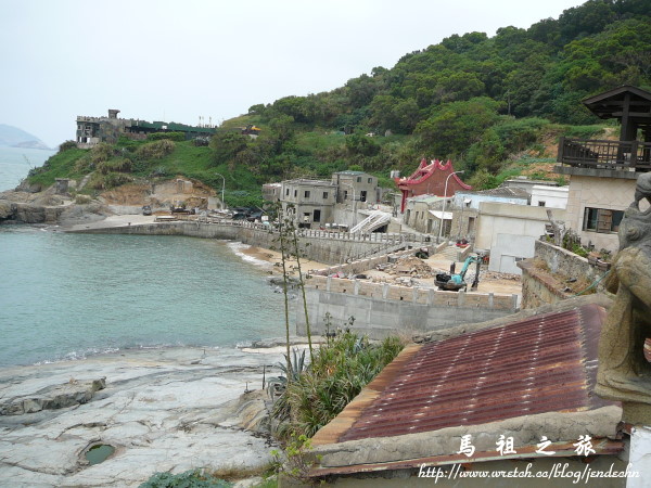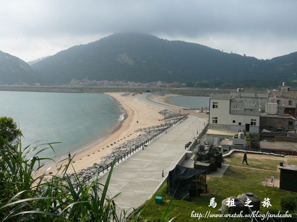 北竿最熱鬧的村是塘岐村,行政區都在這裡,唯一的7-ELEVEN也在此村內,中午就在這裡的「你餓了嗎」餐廳用餐,簡樸擺設的小吃店,店內坐滿了當地人和阿兵哥,吃個紅糟炒飯、燙青菜和魚丸湯,口感很好。北竿機場也在塘岐村,繞過機場,看到細細長長的塘后道沙灘,就進入了后澳村,戰爭紀念公園、幾個防守據點都在這裡。由北竿最高點的壁山觀景台,可以看到整個北竿機場、后澳村,只可惜我們騎上壁山時,恰好霧氣遮住了,只能看到一片模糊的景色,真是美中不足!