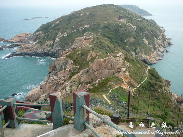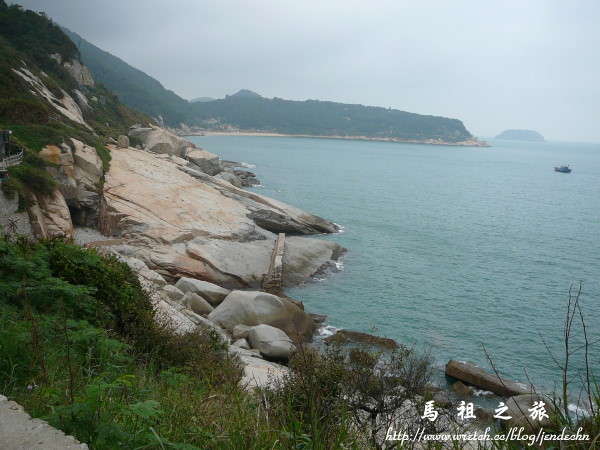 第一次到馬祖,還是想四處去走走,向民宿老闆租了機車,沿著海岸線由芹壁往北走,北竿不大,只有台北市的三十五分之一,繞一圈不需多久時間,很適合機車旅遊。我們的運氣很好,三天的天氣都是時陰時晴,太陽不大,連傘都沒撐,只有遇到一點小雨,真是感謝老天爺!馬祖的地形很少寬闊平原,地勢高低起伏,道路陡峭蜿蜒,有些路段完全看不到盡頭,尤其進入北竿橋頭村那個路段,更是驚險!在台北生活久了,逐漸疏忽了機車技術,原本是我載著同事,才離開芹壁沒多久就遇到了橋頭村那個陡斜彎路,只好換人駕駛了,後來發現南北竿最陡的路段大概就屬那裡,接著就漸入佳境!