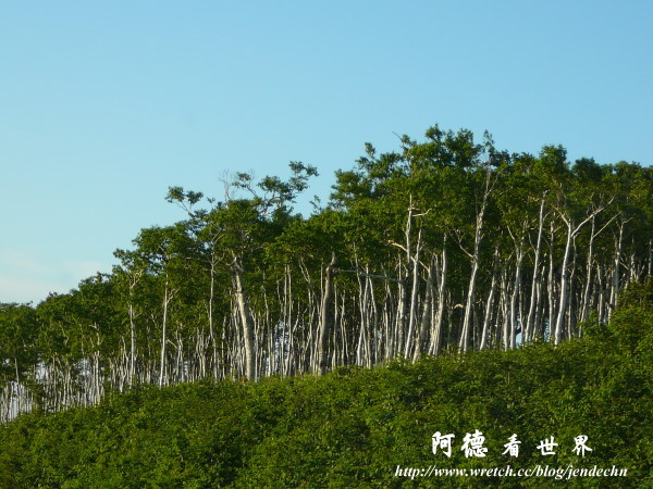 此次的北海道之旅也不例外,全程開車,旅遊重點鎖定道央的大平原和道東的祕境,這時才真正體會到北海道是一個乳牛王國,牧場密集的程度與歐美比來起,一點也毫不遜色。余天那首「榕樹下」的原曲「北國の春」,一開頭是「白樺 青空 南風‧‧‧」,這就是北海道的最佳寫照,當車子在蔚藍天空下行經大片的白樺樹林時,耳中不禁響起那令人懷念的熟悉旋律!