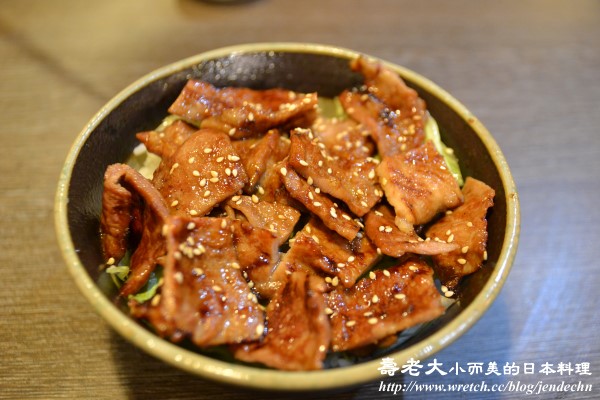 第一次進去吃時,終於知道為何它的生意如此好!燒肉丼飯、雞腿丼飯、鰻魚飯的醬汁調得很棒,飯粒也香Q好吃,價美物廉。生魚片雖然不像高檔的日本料理店種類這麼多,新鮮度可是一點都不差,尤其都用現磨的阿里山山葵,在這種平價小店更是難得!