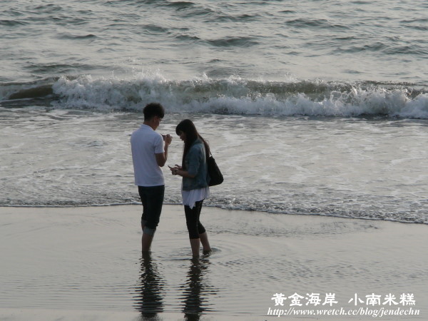 到台南參加女兒的畢業典禮,順道找朋友聊聊天,振愉十分熱情的帶我們到台南、高雄交界附近的「黃金海岸」看夕陽。雖然到達時刻早了些,沒能等到夕陽落下水平面,但那片迎著波浪的細沙海灘,已是十分美麗動人,更可想見,當金黃餘暉灑落那瞬間,必是嫵媚浪漫,難怪贏得黃金海岸的名稱!