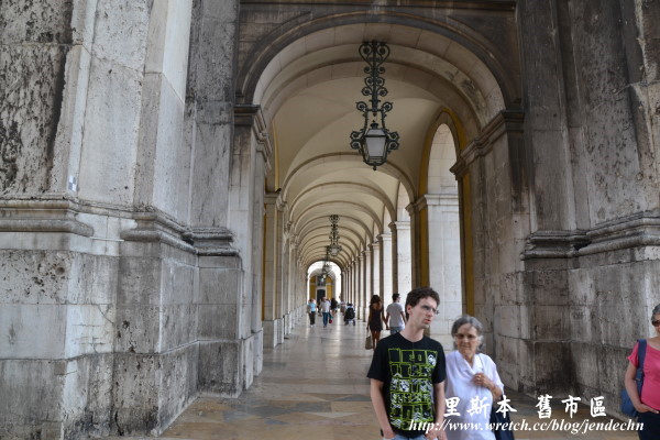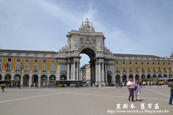 我們住在自由大道北邊的愛德華七世公園附近,將車子停好後,買了一日地鐵票,開始了城市觀光。先坐地鐵到Baixa-Chiado站下車,走過熱鬧的商業區Baixa區,穿過精緻凱旋門後,來到了位於河邊的商業廣場(Praça do Comercio)。廣場兩邊的建築是政府的辦公機構,中間是約瑟一世的騎馬雕像,16世紀時這裡是皇宮所在地,1755年的大地震使宮殿夷為平地,目前所見的建築都是後來重建。廣場旁邊有遊客中心,拿了地圖和交通資料後,搭E28電車到Alfama區。