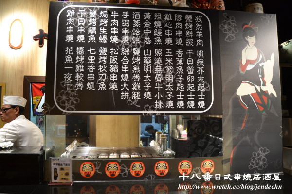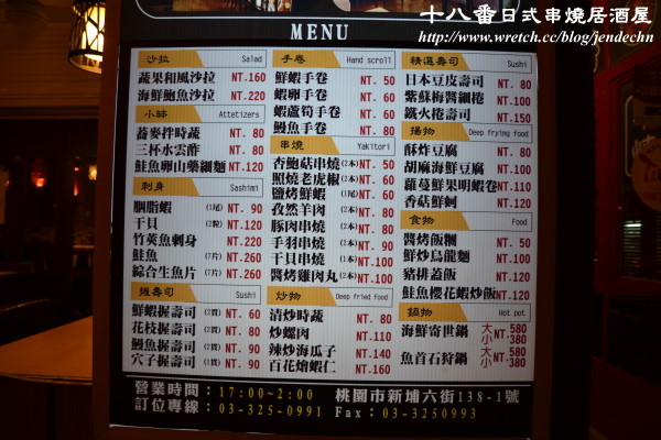 先繞到桃園市區逛逛,再去福容飯店。傍晚游泳、泡湯後,打電話請櫃台介紹附近好吃的日式串燒,櫃台毫不猶豫的介紹「十八番日式串燒居酒屋」,還說吃過的客人都很滿意呢,於是決定去嚐嚐看,中秋節嘛,吃個燒烤應景!