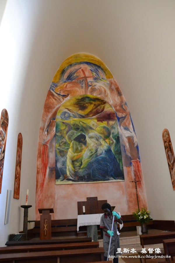 吃完早餐,就開車前往聳立於Almada山頂上的基督像(Cristo Rei),這尊基督像是里斯本的地標,其興建靈感來自巴西里約熱內盧的基督像(Christ the Redeemer),於1959年樹立在太加斯河河口,是藝術家法朗科(Francisco Franco)花了10年的時間完成。基督像本身高28公尺,若加上下方的基座,則高達110公尺,壯觀宏偉的耶穌像雙手張開,面朝向里斯本,隔著太加斯河和里斯本相望,默默地守護著里斯本,讓每位在海上漂泊的遊子,都能平安地回來。