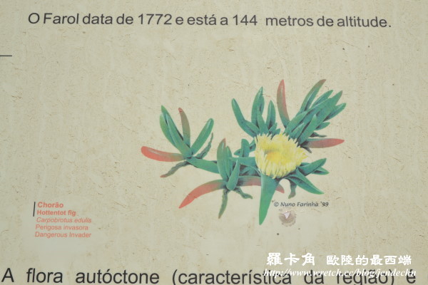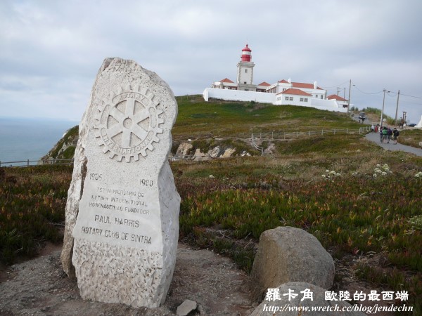 到了羅卡角時,已經是下午5點,雖然太陽仍然高掛,但和正中午的豔陽相比,已經不再炙熱,這裡的風勢頗強,稍不注意,會被吹的東倒西歪,強風襲來顯得有些寒意,遊客紛紛將外套穿上。羅卡岬140米高的山崖上,建了一座燈塔和一個面向大西洋的十字架,十字架上的碑文是16世紀葡萄牙詩人Luis de Camoes來此地遊玩,有感而發寫下的名句「Onde a terra se acaba e o mar começa」,中文的意思是「陸止於此、海始於斯」。
