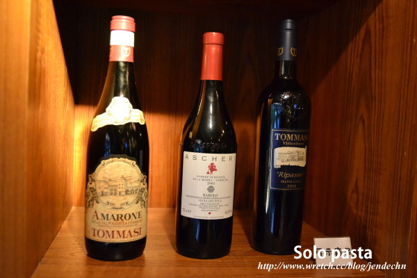 剛去時人不多,可是位置幾乎被訂光了,服務人員好不容易找了一個不錯的位置給我們。氣氛優雅,裝潢簡單有格調,四周的櫥櫃上擺放著義大利料理的相關產品,當然還有義大利的葡萄酒,用餐的感覺很棒。