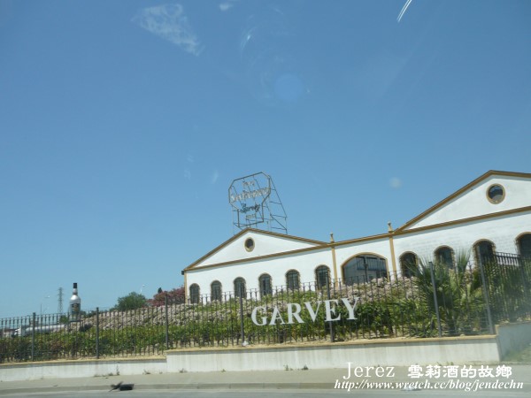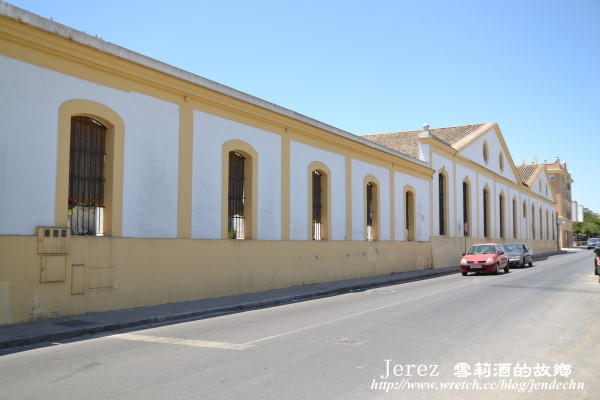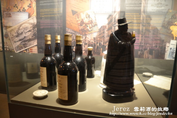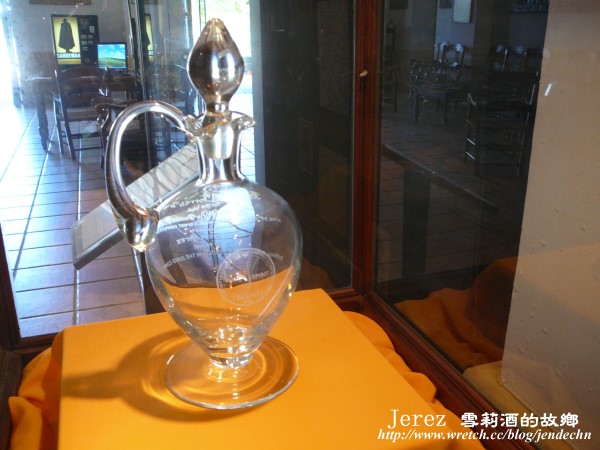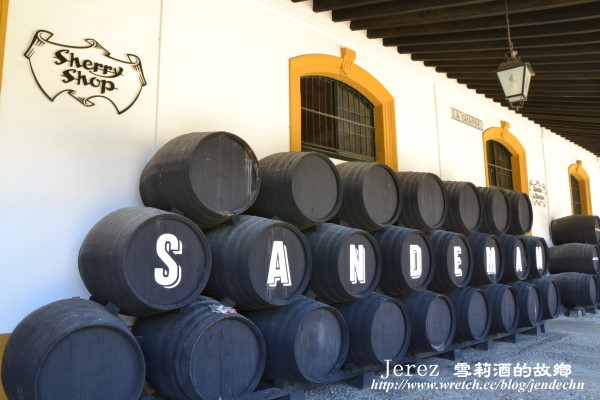 赫雷斯的酒莊不少,有的酒莊必須事先預約,有的只接受團體預約,最後決定參觀山德門酒莊(Sandeman)。車子開到赫雷斯市區時,車子的衛星導航出了點問題,在酒莊附近繞來繞去,就是找不到酒莊,只好用最原始的方法,看著地圖找路,才找到了山德門酒莊,卻錯過了專人導覽的時間,只能自行參觀酒莊了。這個酒莊名氣不小,在台灣也曾買過他們家的酒,在葡萄牙波爾圖(Porto)的河畔用餐的餐廳,也是這家山德門酒莊。