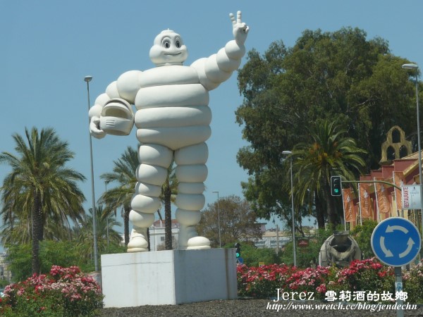 赫雷斯(Jerez de la Frontera )在塞維亞(Sevilla)南邊大約90Km處,是西班牙名酒「雪莉酒」的故鄉,也是許多著名酒莊的所在地,既然來到這附近了,當然得順道去繞繞。由塞維亞走A4接AP4公路,花了6歐元過路費,大約一小時就可到達赫雷斯。西班牙的公路規劃的非常完善,道路狀況大部分都不錯,A和AP都是高速公路,A開頭不需付費,AP開頭就要繳過路費,過路費不菲,還好A公路幾乎遍及整個西班牙,要走AP的路段並不多。
