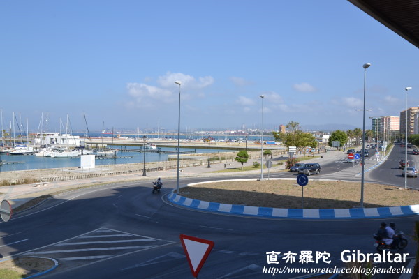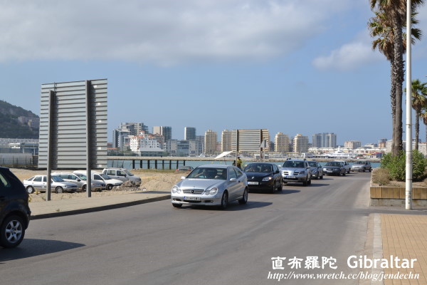 對伊比利半島上這個唯一的英國屬地感到好奇,來到了這附近,當然得去繞一繞。聽說要進入直布羅陀的遊客很多,在兩國邊界檢查哨常常24小時都塞車,為了方便過關,特地訂了位於邊界旁的飯店。怕邊界檢查哨大排長龍,原本計畫先入住飯店,第二天一早再開進直布羅陀避開人潮,但當天傍晚到邊界附近時,看到沒有幾輛車,臨時改變計畫,先去直布羅陀再回來飯店。台灣現在進入英國和歐盟都不需簽證,經過檢查哨時,看了護照後就直接通關,也沒有問話。早期到直布羅陀比較囉唆,要事先辦理英國簽證,西班牙簽證還得是多次簽證,否則就麻煩。飯店旁的中國餐廳員工就說,中國大陸目前還沒有免簽證,有人忘了辦理多次簽證,進入直布羅陀後就再也回不了西班牙!