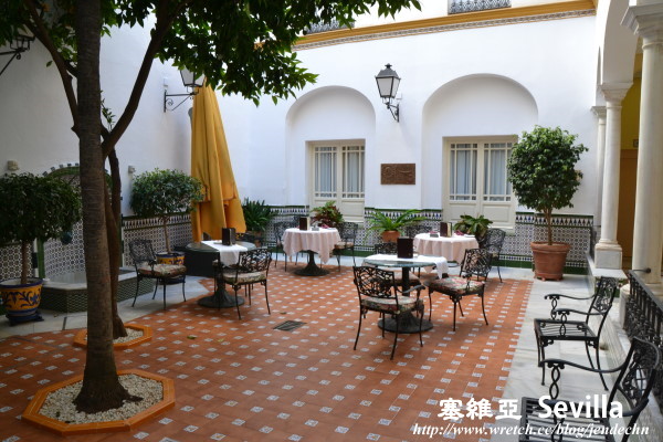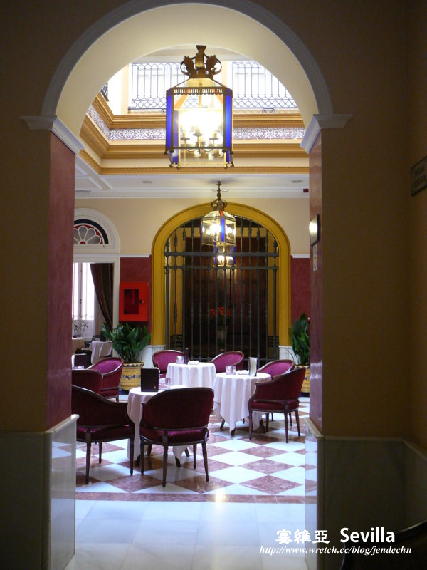 卡門和名戲「塞維亞的理髮師」都是以塞維亞為舞台,世界三大祭典之一的「春祭Feria」也在這裡舉行。塞維亞雖是安達魯西亞最大的城市,但主要的景點分布在舊城區大教堂周遭,徒步就可以參觀。住在舊城區的四星級飯店Best Western Hotel,每晚50歐元,離大教堂走路約15分鐘路程。這是間十分美麗的飯店,採用的色調鮮豔、對比強烈,明亮有活力,內部有好幾個美麗的中庭,迴廊似的走道繞來繞去,像走迷宮般很容易迷路。