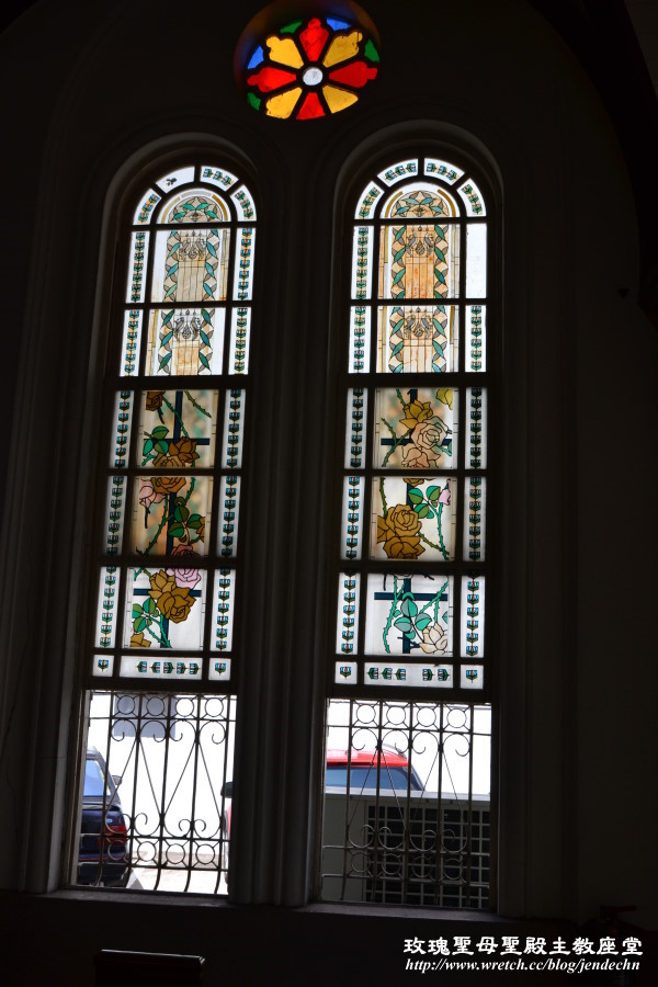 一早起床到飯店附近散步,發現五福路接近愛河的南側,有一個不起眼的教堂,走近一看才知道是「玫瑰聖母聖殿主教座堂」。在陽光照耀下閃閃發亮、耀眼奪目。雖然外型沒有歐洲的教堂這般宏偉,內部的設計卻是一點都不馬虎,精雕細琢,美得讓人不得不細細品味。據裡面的志工所述,側邊的木窗完成於八十幾年前,往上推到任何位置都可以自然停住,操作起來方便又簡單,真讓人嘖嘖稱奇!