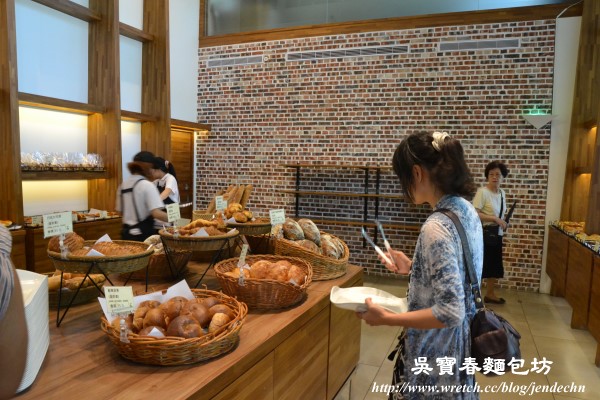 麵包坊位於四維三路,四維行政中心的對面,採一樓挑高設計,內部有一面紅色磚牆,採用不少木頭的元素,簡潔明亮,感覺很溫馨,迴異於一般的烘焙坊。外觀的設計也有別於一般麵包店,格調高雅,很有氣勢,有如巴黎香榭里榭大道的名店呢!