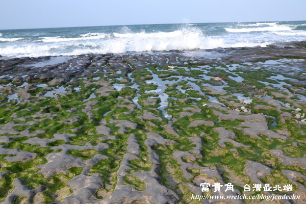 海灣附近的老梅綠色礁岩石槽,是很多攝影者愛不釋手的景點,遠遠望去,白色海浪忽強忽弱拍打著礁岩,刻畫出一條條的石槽,讓人不禁為大自然的力量感到懾服,如此特別的景緻,不知要經歷多少歲月才能累積而成!