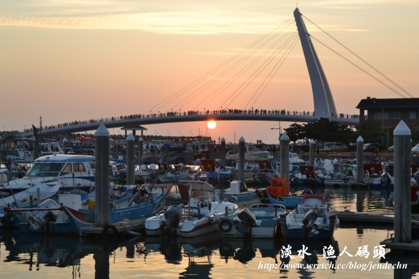 離開富貴角往淡水方向行駛,在車陣中好不容易到達漁人碼頭,等停好車子,夕陽幾乎已落入地平線。匆匆一瞥,雖然無法將夕陽和夜景同時入鏡,卻能感受到秋末的太陽依然熱情不減。跨接到觀景平台的情人橋是漁人碼頭的地標,在夜晚燈光的照耀下,浪漫的氣氛,總是讓人捨不得離去。
