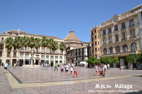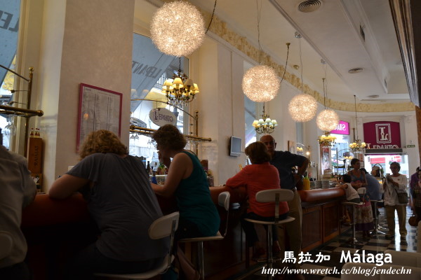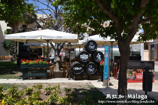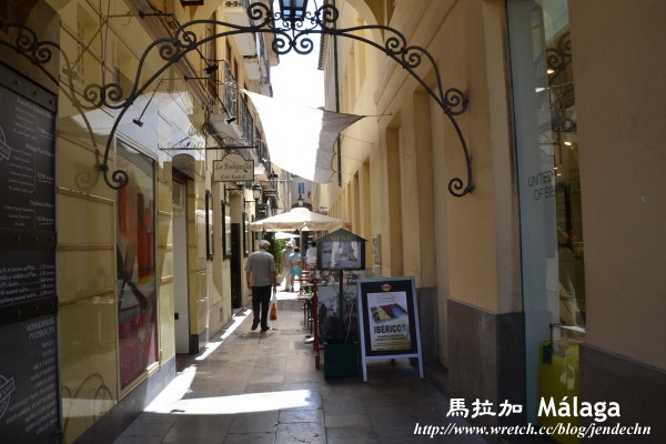 在馬拉加的第二天,沒有行程和時間上的壓力,悠哉的起床梳洗,再輕鬆的散步到馬里納廣場(plaza de la Marina)附近享用早餐,連接馬里納廣場和憲法廣場(plaza de la Constitucion)間的Marques De Larios街,是條熱鬧的購物商業街,遊客人潮當然也集中在這周遭,附近的巷弄間開了不少美味餐館。