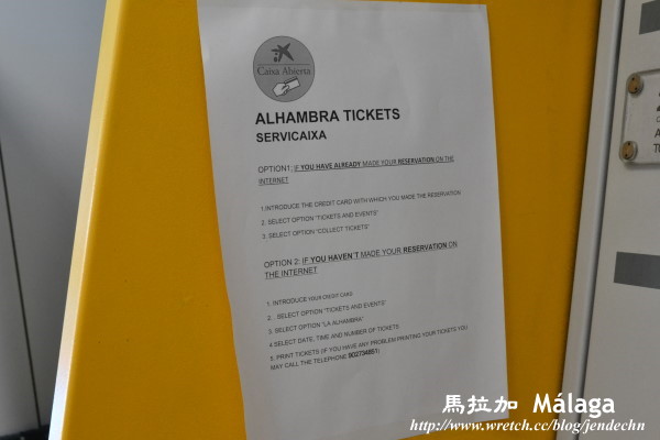 用完餐,先到La Caixa銀行買隔兩天在格拉那達要參觀「阿爾汗布拉宮」的門票。阿爾汗布拉宮是西班牙之行不可錯失的景點,王宮門票每天只開放6~7千人,大部分遊客都怕買不到票,事先在台灣就想先購票,但我們的行程未定案,只能到了西班牙再邊走邊訂票了!原本想在網站上購票,未料所帶的幾張信用卡都無法成功,只好親自到銀行的櫃員機買票。這家銀行代理「阿爾汗布拉宮」門票,只要到它的自動櫃員機(有英文操作說明),跟著操作指示,很快就可以拿到票!只是要仔細看好票的種類,有分「王宮加庭園的票」或「只參觀庭園的票」,如果買的是後者,就進不了王宮了。