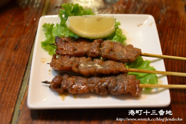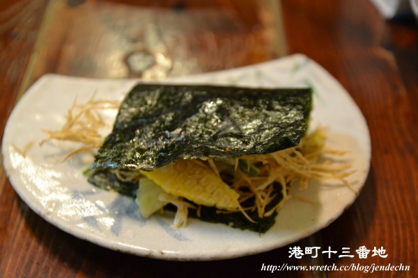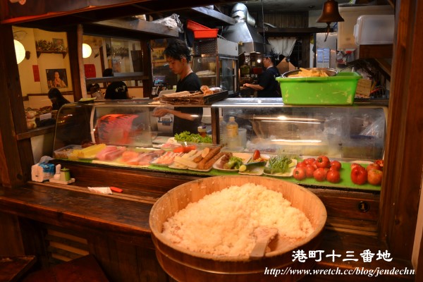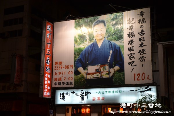 本來想到附近的阿水獅豬腳吃晚餐,在網路搜尋一下,決定走路到中正路的港町十三番地吃串燒。看到外面的看板寫著「幸福の古日本便當,把幸福帶回家吧!」,就讓人覺得很溫馨,店裡的呈設古意盎然,連茶壺都有著濃濃的日本味,顯然是有歷史的老店!