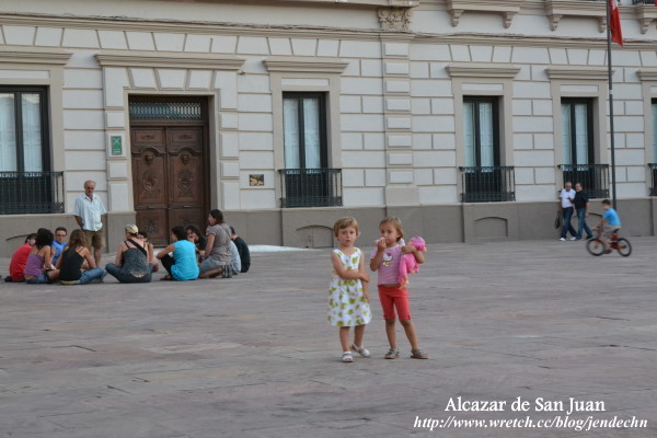 回到聖胡安堡,辦好住宿手續,就出門吃晚餐。走到主廣場時,時間尚早,用餐的客人還不多,聖胡安堡並非觀光城市,外來的遊客不多,東方面孔更少,當我們坐下來用餐時,旁邊的目光都集中到我兩身上了。到了晚上八點過後,原本冷清的主廣場突然熱鬧起來,城裡的居民都紛紛出門來此聚會,大人們飲酒作樂,小孩則在一旁玩耍。我們認真的觀察旁邊那群踢足球的孩童,年紀有大有小,年幼的可能只是幼稚園歲數,每個人的動作都十分俐落準確,幾乎都可以神準的將球踢出,原來從小就訓練有術,難怪西班牙的足球在全球數一數二!我們點了一盤牛肉,本來還在嘀咕著價錢不便宜,等到牛肉端上桌時,兩人頓時傻眼,原來一份竟有七大塊牛排,難怪價錢不菲!