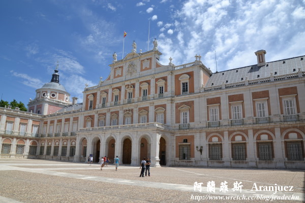 阿蘭菲斯的王宮(Palacio Real),是費南多和伊莎貝爾兩位天主教雙王最喜歡的宮殿,歷經後來的國王多次整修擴建,王宮在1754年遭遇火災而嚴重受損,火災後進行了大幅度整修。我倆一看到王宮的正面,總覺得一股熟悉感,原來當初的建築家奉菲利浦五世之命,仿造法國凡爾賽宮而建造,難怪看起來眼熟,凡爾賽宮去過二次,印象比較深刻。