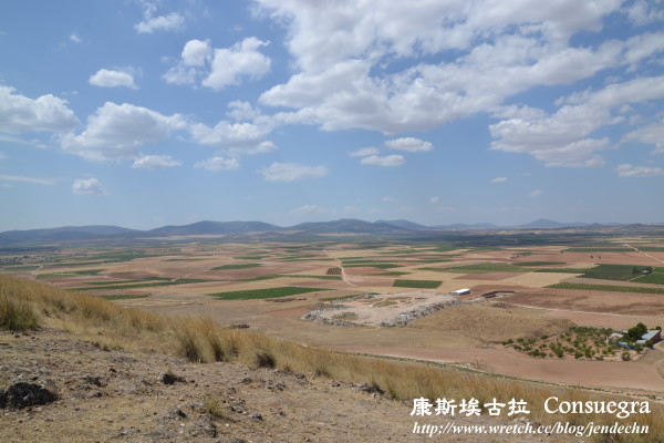 康斯埃古拉的山丘風車區,視野極為寬廣,站在最高處,遠眺四周黃綠相間的田野大地,波浪起伏如詩如畫,這裡種植著珍貴的番紅花,每年10月下旬會舉辦番紅花節。