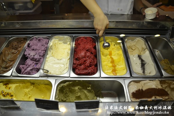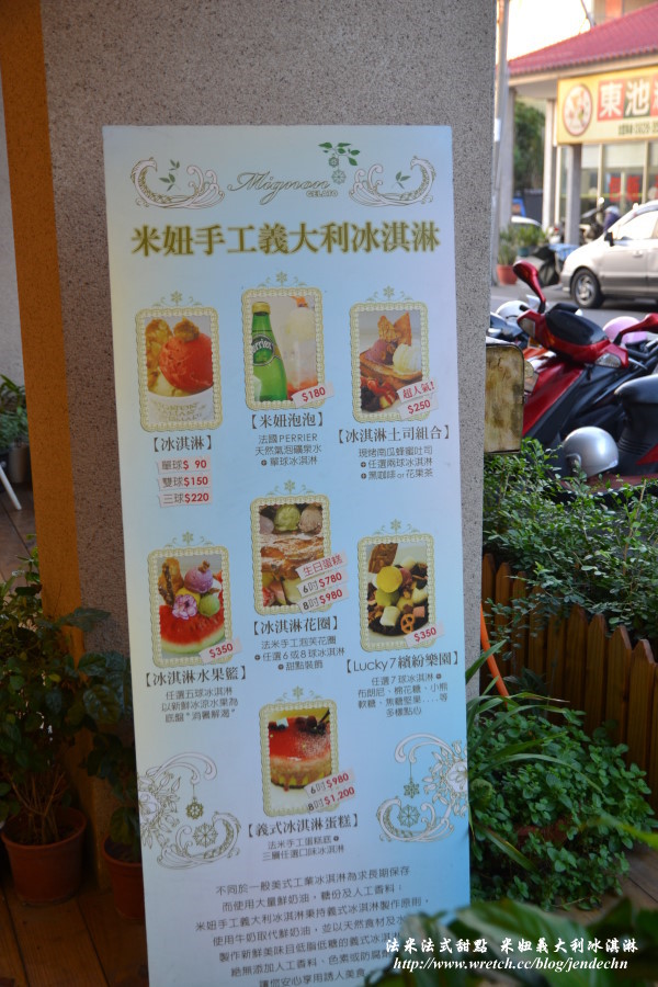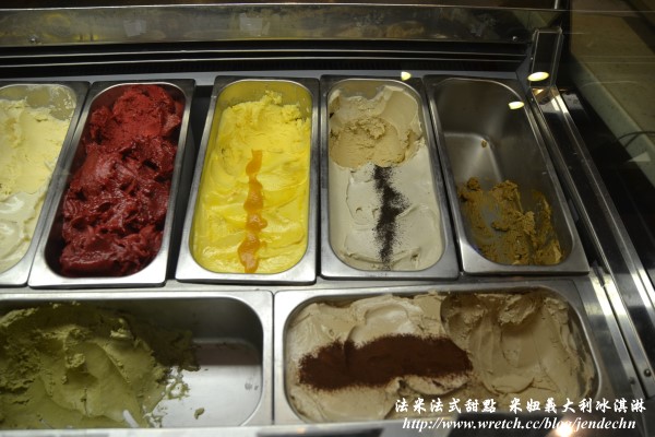 除了法米本店,隔壁的米妞義大利冰淇淋及米那日本設計服飾,都是她們開的店。我們先點了聖米歇蘋果塔、烤布蕾與咖啡,口感不錯。再去點了手工松露巧克力和萊姆黃,除了巧克力之外,都十分滿意。心想一趟路這麼遠,既然來了,就順便品嚐三種口味的冰淇淋,感覺比教清爽,不像義大利的冰淇淋綿密拔絲的口感。