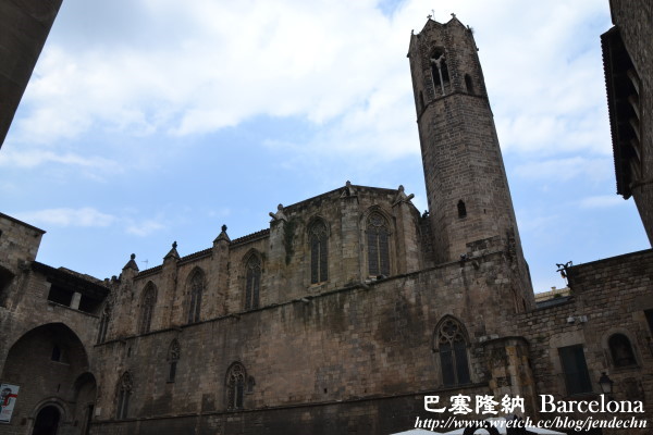 休息夠了,沿著海岸的哥倫布大道往小巴塞隆納(La Barceloneta)方向走,遠遠就看到醒目的加泰隆尼亞歷史博物館(Museu d’Història de Catalunya),矗立在小巴塞隆納的海灣。正在拍照的時候,又遇見了前一天在聖家堂同搭電梯的台灣遊客,同鄉人兩度巧遇,不免熱絡的寒喧起來,西班牙走了這麼多天,遇到的台灣遊客沒幾個。天色漸暗,那三個女同鄉怕危險,急著離開,我們則往海上聖母教堂(Iglésia de Santa María del Mar)走去,這裡的巷弄也如迷宮般拐來拐去,看著地圖走,明知就在附近,卻找不到它,經路人指點,果然一轉入小巷,就看到了海上聖母教堂。海上聖母教堂的正面,兩邊八角鐘樓高立,雖然簡單素樸卻顯得宏偉莊嚴。曾看過一本小說「海上教堂」,故事的背景就是這座教堂,書中對教堂建造的過程,巨細靡遺描述頗深,因此對這座教堂有著深刻的印象。站在教堂大門前,書中描述老百姓們,同心協力辛苦建造教堂的感人畫面,再度浮現腦海!
