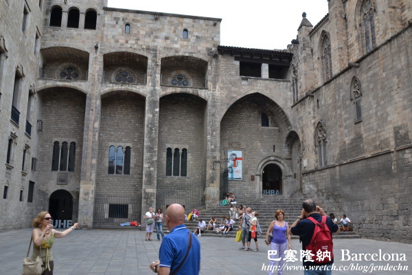 由蘭布拉大道彎入Portaferrissa小巷,先參觀大教堂。這條狹窄小巷上,開了不少高級名店,我們也發現Amorino義大利冰淇淋,曾在巴黎吃過,那美味還存留在腦海中,當然得買來消消暑!乍見巴塞隆納大教堂的瞬間,竟感到有點失望,沒有期待中的壯觀,外牆顯得十分斑駁,主殿正門正在整修中,無法看到原本美麗的外貌。大教堂週遭的巷弄像迷宮般,繞來彎去,拿著地圖找路,還是有點迷糊,花了點時間,才把方位弄清楚。國王廣場(Plaça del Rei)和馬雷美術館(Museu Frederic Marès)都在大教堂附近,馬雷美術館中庭很美,四周拱門迴廊環繞,中庭中央有座美麗水池,遊客走到此處,會自動放慢停下腳步。坐在中庭的鐵椅上休憩,有幾個小女娃在水池旁戲水,不斷的在中庭跑來跑去,可愛的模樣逗的大家哈哈大笑!