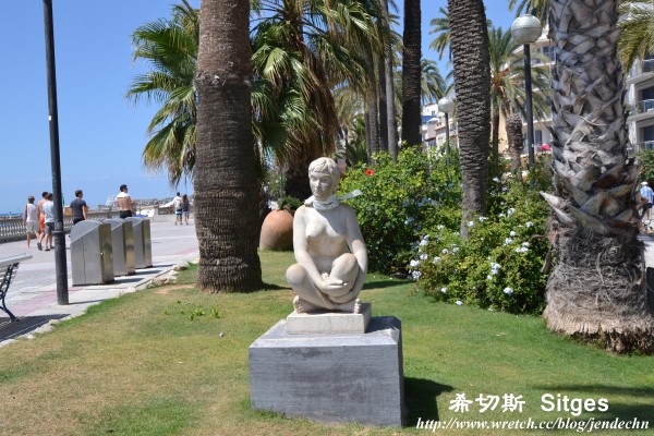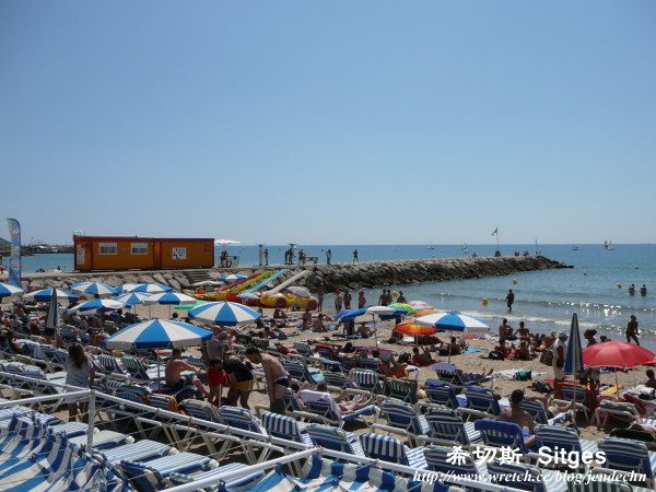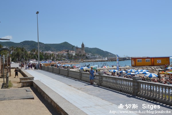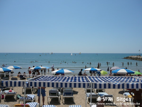 (3) 今天是租車的最後一天,將車開進巴塞隆納還車前,順路繞到巴塞隆納南邊40公里處的海濱度假勝地「希切斯」。這個充滿熱情活力的地中海小鎮,是國際戲劇節和國際奇幻電影節的舉辦地,有著美麗的白色沙灘、棕梠樹步道和深淺有致的湛藍大海,到了夏天,沙灘上總是聚滿狂歡徹夜不眠的遊客,每年「狂歡節」的最後一天會舉辦同志大遊行,表演節目更是達到高潮。
