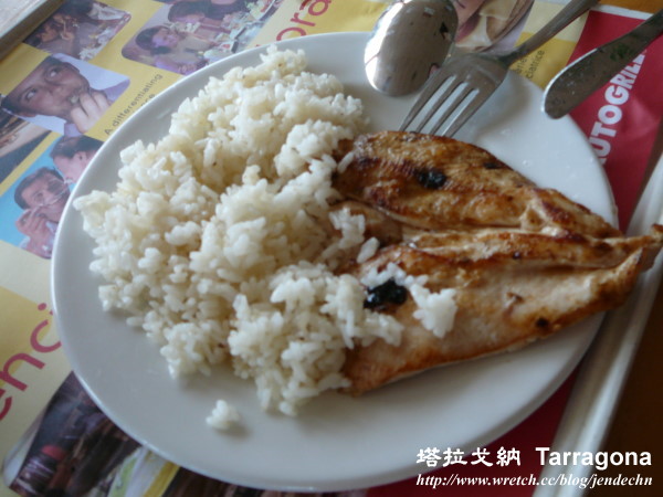 塔拉戈纳並不大,道路不複雜,很容易找路,慢慢逛完主要景點,半天時間就綽綽有餘。到海邊時,時間尚早,原想走下海灘戲水,突然一陣冷風襲來,料想海水溫度一定頗低,還是早點回去飯店泳池游泳。輕鬆游完泳後,在飯店附設餐廳用餐,老婆因在市區已吃了點心,沒什麼胃口,兩人共點一份雪魚排套餐分享,沒想到餐點一來,除了主餐外,前菜、湯、點心(可口的冰淇淋)都是兩人份,額外再加點了兩杯白酒,居然送了一大瓶白酒來,我們解釋說「只要倆杯」,那位和藹的服務伯伯,一直笑著說「OK!OK!」。兩人心想「天啊!在這四星級飯店內,這一餐吃下來,必定花費不少!」等到退房刷卡時,兩人都嚇了一跳,那豐盛的晚餐竟然只要13歐元!這麼體貼可愛的飯店,當然得大大誇獎一番!