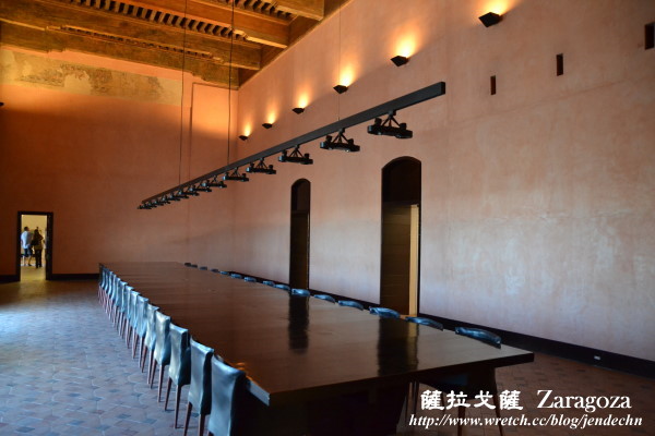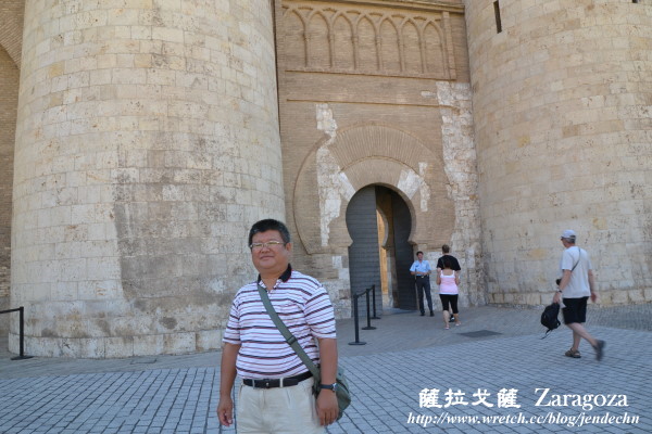 在巴士站搭乘計程車,遇到了一位熱心的司機,沿路兼做市區導覽,告訴我們哪裡有景點。車站到飯店的距離不遠,很快就到達飯店附近,卻遇到了馬路封閉整修中,車子無法進入,只好徒步走到飯店。薩拉戈薩的舊城區不大,幾個小時就可以逛完,辦好入住手續後,在櫃檯拿張地圖就出門參觀,首先去參觀阿爾哈菲利亞宮(Palacio de la Aljafería ),在飯店附近搭33號公車,只有幾站的距離。由車站到飯店的途中,有經過阿爾哈菲利亞宮,那位熱心的司機還特地告訴我們,所以一下公車,很快就找到了大門,還遇到週日免費入場,對這個城市有了美好的初印象。