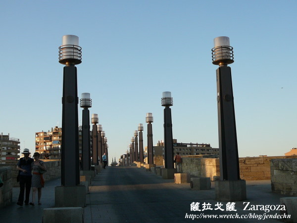 厄波羅河上的Piedra橋是觀賞比拉爾聖母院的最佳地點,站在橋上,可以將整個聖母院完全放入鏡頭,水中倒影也清晰可見,如詩如畫,美不勝收。為了拍攝聖母院夜景,只好先去用餐,再重回橋上等候,西班牙要拍夏天夜景,是一件非常辛苦的事,常要等到晚上10點以後,也曾遇過等了半天卻不見點燈的慘狀,幸好大約10點時,四周燈光逐漸亮起,比拉爾聖母院的燈光也在期盼中光芒四射!