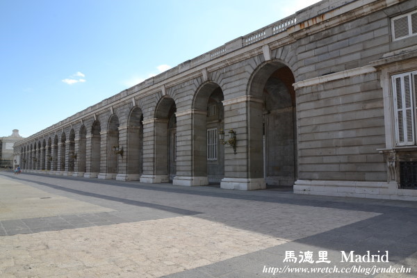 到王宮最近的地鐵是Opera站,由Opera站經過皇家劇院(Teatro Real),穿過東方廣場(Plaza de Oriente),走到王宮大約10分鐘的路程。印象中上回參觀王宮時,大廣場對外開放不需門票,現在已經改成要買票才能進入參觀,門票每人10歐元,當天入場參觀的遊客並不多,很快就進去了。王宮的裝潢十分豪華,內部設計和Aranjuez的王宮很像,只可惜裡面不能拍照,只好在廣場和外面的迴廊多拍些照片了!