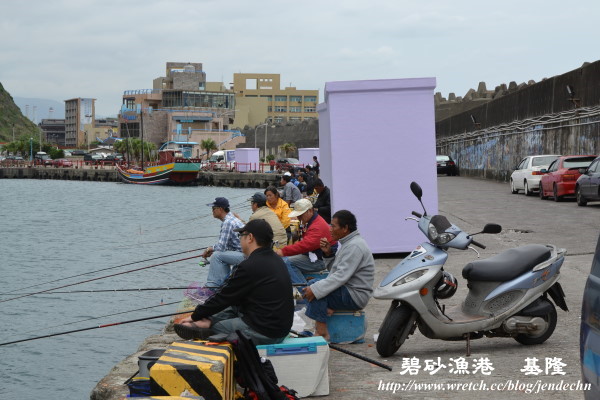 開到2號省道左轉,一會兒就到了碧砂漁港,我們先往外海的防波堤走去,港灣內除了一般的漁船、海洋大學的研究船還有難得一見的大帆船。跟其他漁港一樣,這裡的釣客熱情不減。