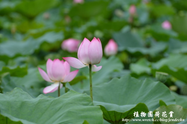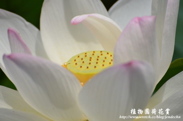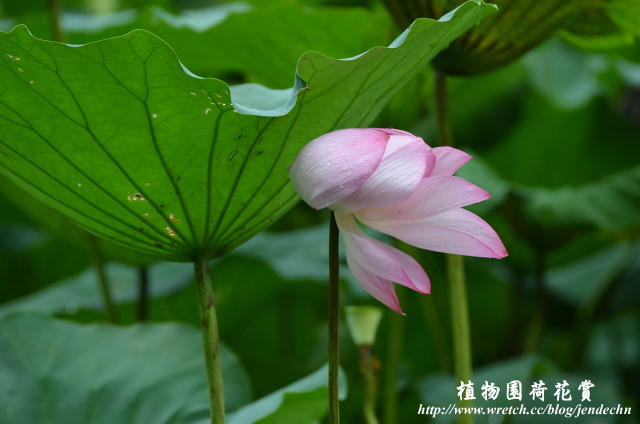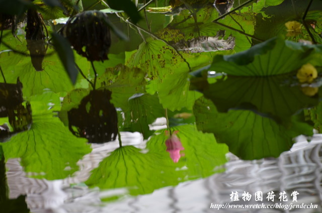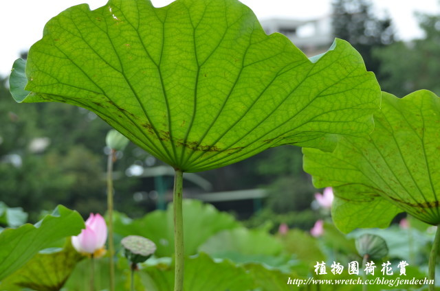 第一天拍到下午兩點半,一踏進家門就下起傾盆大雨,雨勢持續到隔天早上才稍歇,雖然天空仍然是厚重的雲層,濕度頗高,懷著碰運氣的心態,繼續第二天的植物園散步。剛下過雨,奈米結構的荷葉上布滿圓潤透明的水珠,雖然陽光不足,很難有晶瑩剔透的畫面,一面拍還一面飄著小雨,在這個雙颱夾擊的苦悶日子,已經感到心滿意足了。