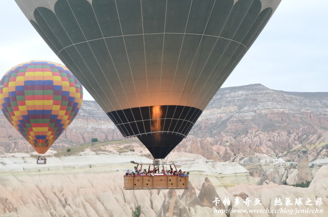 到土耳其旅遊,中部卡帕多奇亞坐熱氣球欣賞奇岩怪石,是主要的行程之一,既然我們來到了卡帕多奇亞,當然就得去坐坐熱門的熱氣球。土耳其的熱氣球旅遊業發展十分成熟,安全度頗高,這裡的熱氣球公司不少,價差頗大, 110歐元到170歐元都有,雖然聽說價錢可和業者議價,但比較有名的幾家公司,在暑假旺季議價空間不大,價錢大約是150歐元上下,我們選擇參加土耳其航公司所有的Gőreme Balloons,價錢150歐元。