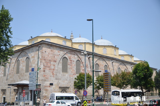 布爾薩街道有數不清的古老建築,尤其有幾座美麗典雅的清真寺和蘇丹陵寢,雖然各有特色,但所在位置極為分散,我們的時間和腳程有限,無法一一去參觀。選擇參觀布爾薩最壯觀的烏魯清真寺(Ulu Camii),烏魯清真寺位在城市的中樞地帶,外牆緊鄰Atatürk Cad.大道,這條Atatürk Cad.貫穿布爾薩中心,市區主要的逛街地點也都在這附近。