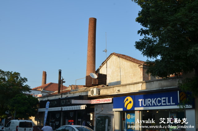 艾瓦勒克「Ayvalık」的意思就是榅桲果園「Quince Orchard」的意思,原來這裡除了是附近知名的海濱度假港口,週遭的山林還種植了不少果樹,尤以橄欖樹最多,是橄欖油的重要製造地。在鎮上看到的一根根高聳煙囪,就是橄欖油製造工廠,在港口附近主要街道Atatürk Caddesi大道上,有家超商上面就立著一個大煙囪,原來那是廢棄的橄欖油工廠改建的。艾瓦勒克除了富產橄欖油外,也是北愛琴海知名的度假勝地,這裡離希臘很近,港口停泊一排觀光船,可以坐船到附近的希臘島嶼Lesvos,到了傍晚時分港口也很熱鬧,居民會特地搭船到小島享用晚餐觀賞夕陽。