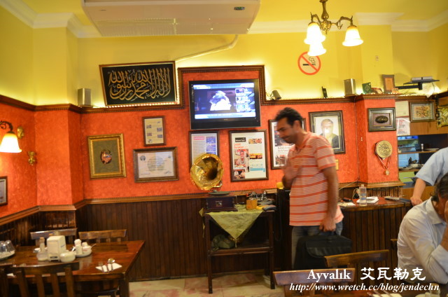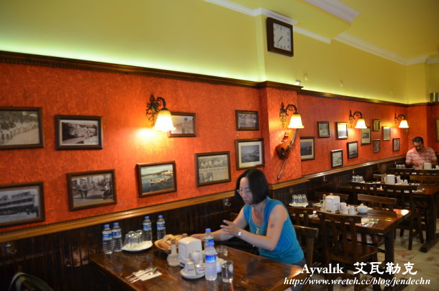 艾瓦勒克的外國遊客不多,看不到幾個東方人,晚餐在港口附近的Paşalı Restaurant用餐時,因為時間還早,餐廳內寥寥幾個人,只有我倆在用餐,其他桌客人只顧說話,也不用餐,我倆正納悶著,突然八點半一到,整個餐廳熱鬧了起來,客人陸續進來,原來是齋戒月的緣故,日落前不進食。餐廳的啤酒還藏在冰箱內層,非常低調的販賣酒精飲料,這家餐廳的料理很美味、價錢實在,店員幽默親切,留給我們美好的印象!
